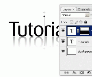 Снимаем выделение Ctrl+D. Перетаскиваем слой с градиентом под слой с текстом и тенью.